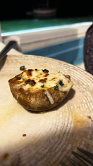 We started with a starter of the most delicious cheese-filled mushrooms and fried calamari. I enjoyed the fresh fish; it was filleted, deboned and served with a beautiful fresh salad, which was complimentary, which was very thoughtful.